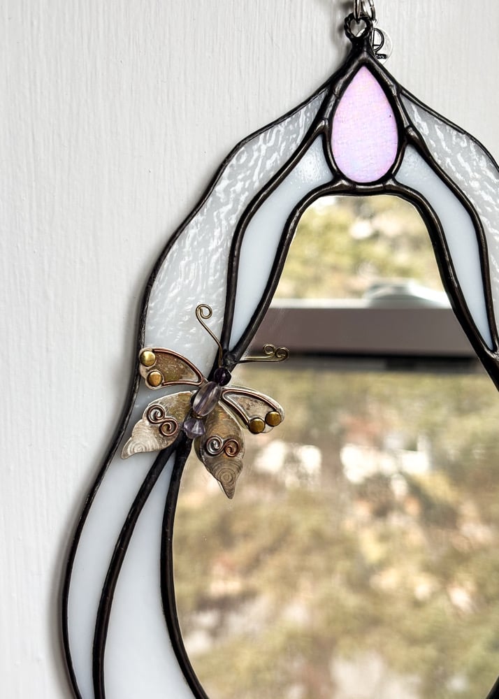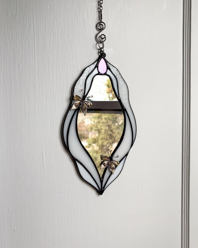 Stained Glass Wall Mirror Designed & Handmade by Moriah HixsonSize: 11 x 6 in