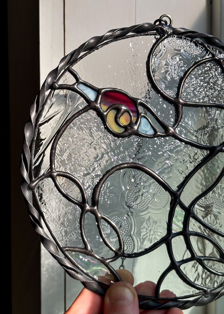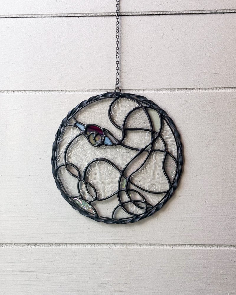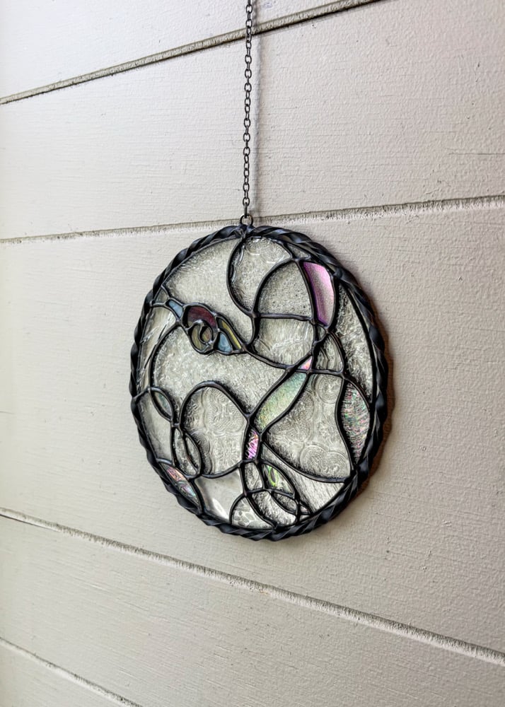 PLEASE TAKE NOTE: Stained Glass is made with 60/40 Tin and Lead, washing hands after handling is recommend.
